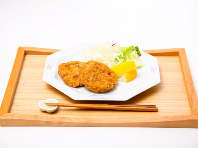 - 牛肉(国産)、豚肉(国産)、玉葱、パン粉(小麦)、小麦粉、玉ねぎ(国産)牛乳、卵、塩、こしょう、コーンスターチ、とんかつソース、たん白加水分解物、ケチャップ、国産こめ白絞油