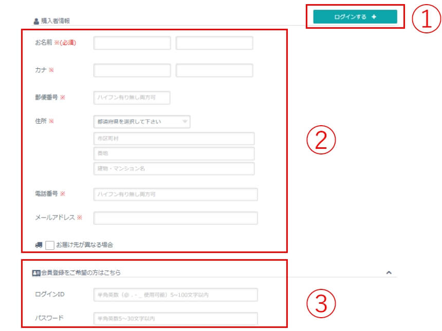 ②会員登録をされていない方は購入者情報を記入してください。